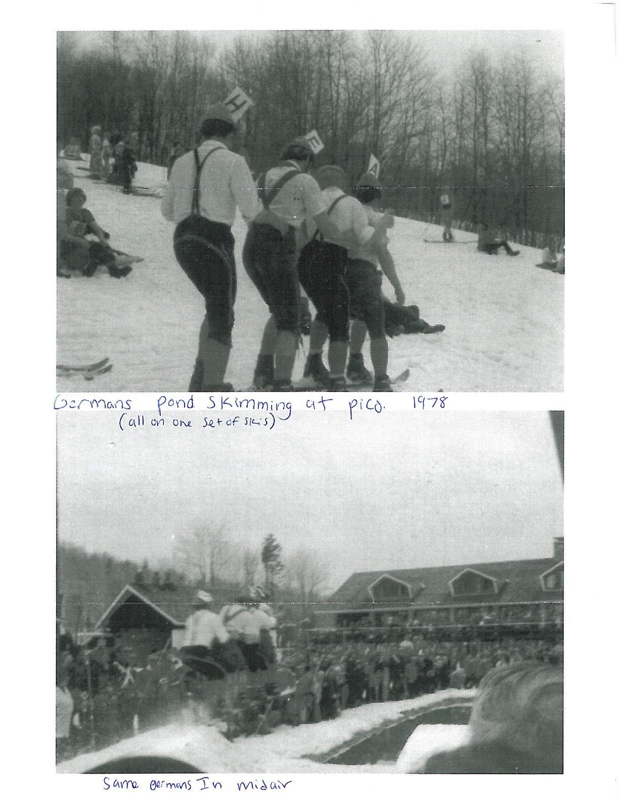 Gutten tag! These are german dudes in lederhosens on one ski. Serious business. They even took it off a jump to pond skim. Totally wild and crazy!