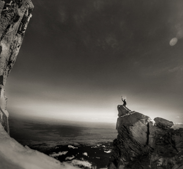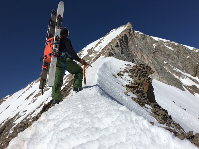 I kept moving up the west ridge. I switched from skins to crampons and began directly ascending the ridge, front-pointing most of the climb. The breeze kept things firm, and I was in no hurry; so naturally I took a bunch of selfies with my go-pro. GTS at all costs, am I right?! There’s something enjoyable about being alone in the mountains. I can move at my own pace, chose my own route, listen to music, and waste as much time as I want taking stupid pictures.
