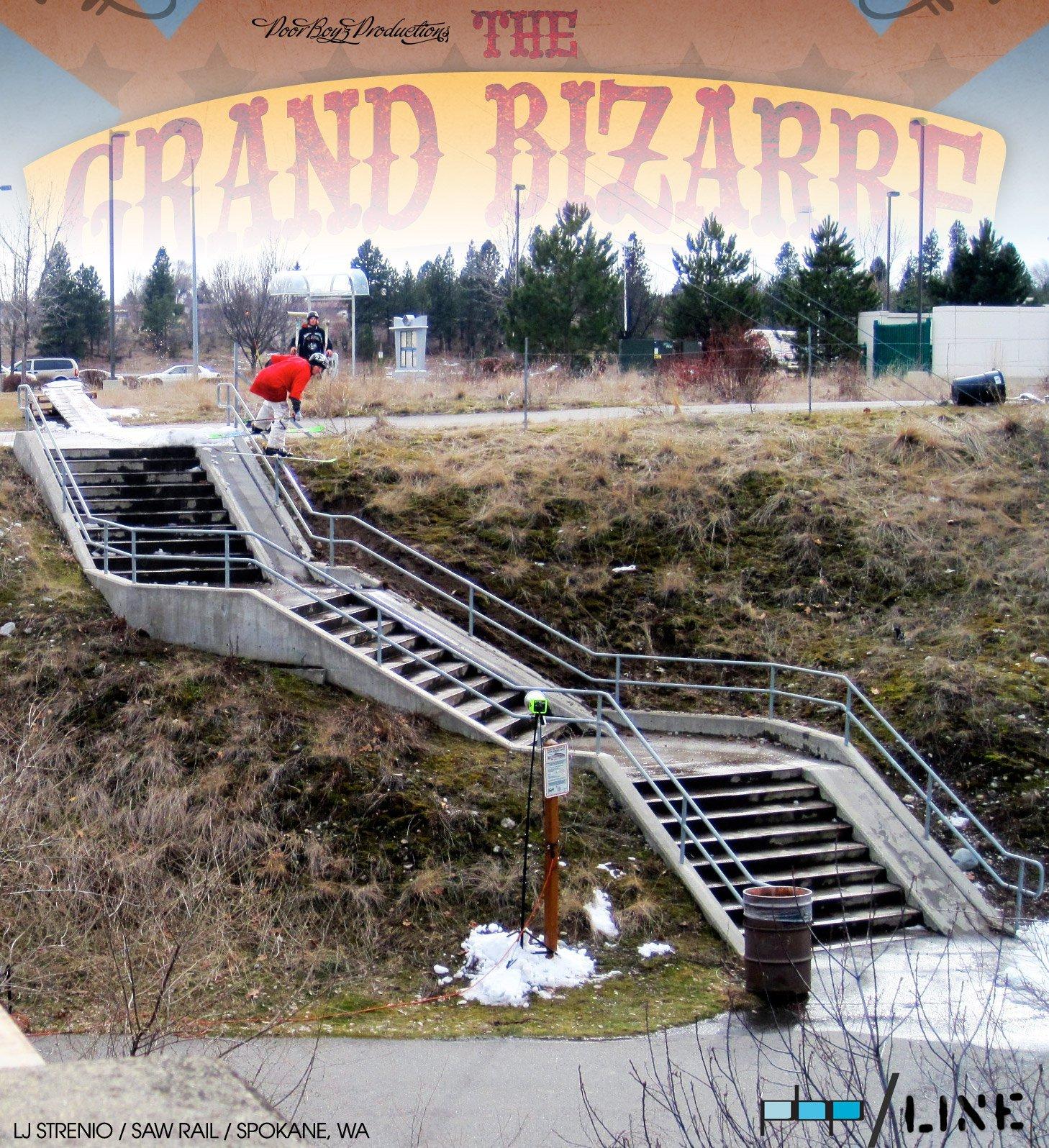 In his second year filming with Poor Boyz Productions, Line MC LJ Strenio has again stepped up his game and we are finally seeing proof in the trailer for the upcoming film “Grand Bizarre”. The trailer is jam packed with ridiculous shots and mind bottling tricks, including a sneak peak of an insane rail LJ sessioned known as the ‘Saw Rail’ (shown above).